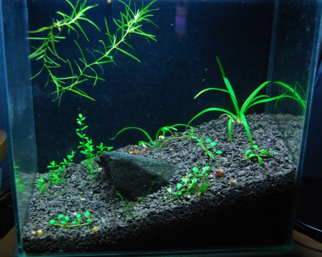 Початок непоганий. Але, як на мій смак, композиція занадто симетрична. Елодея і лимонник - не найкращі варіанти для мікро.