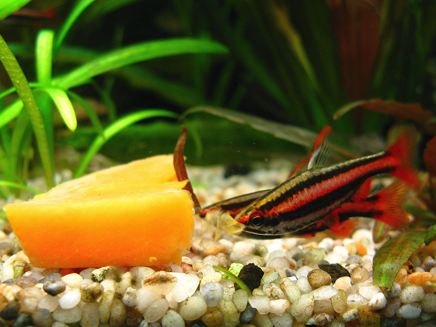 Игорь МД, тыква, предназначенная для стурисомы и креветок Амано. Они вообще все грызут, и видела, как водоросли скусывали или делали вид... Но они постоянно находятся в процессе осмотра всех листьев, кустиков и прочих предметов на наличие съедобного.
