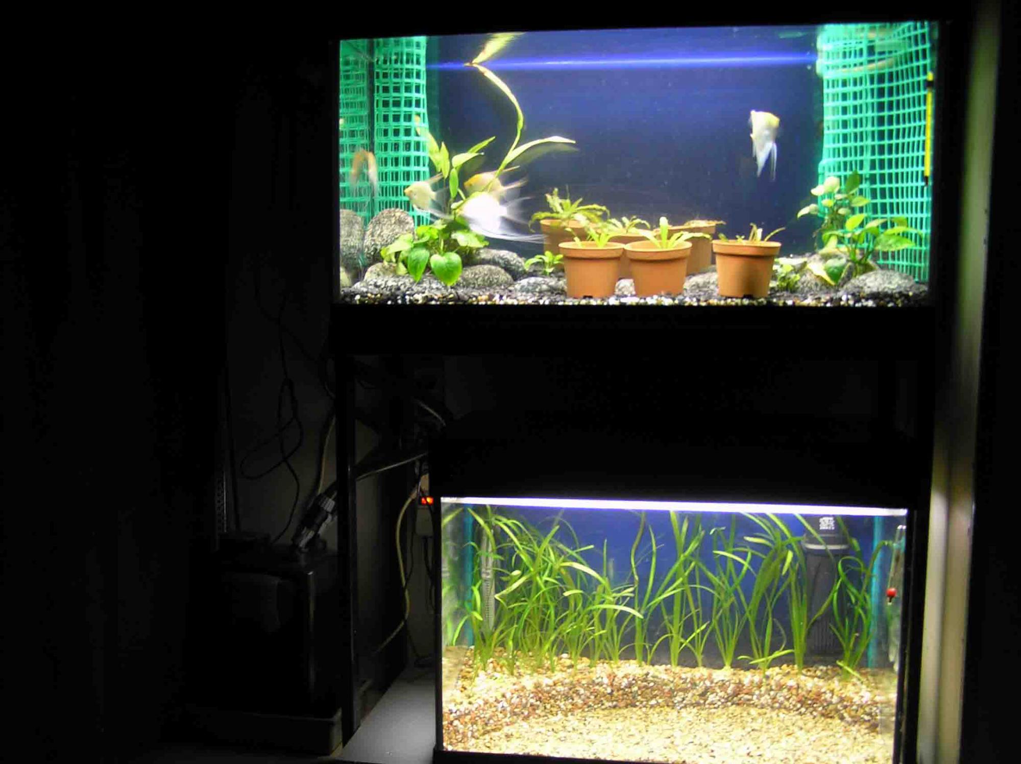 Скалярии до месяца нужно остовлять на ночь ночник,иначе в темноте сильно сбиваютьса по углам и нижние давятьса от удушья.