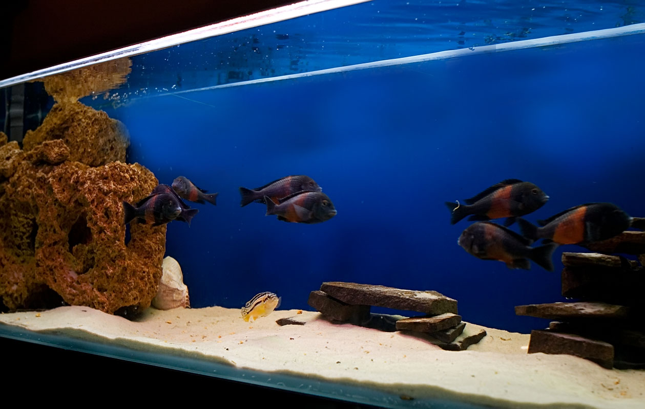 цихлидник сейчас выглядит несколько иначе , у меня все рыбы подохли и я запустил трофеусов бемба.