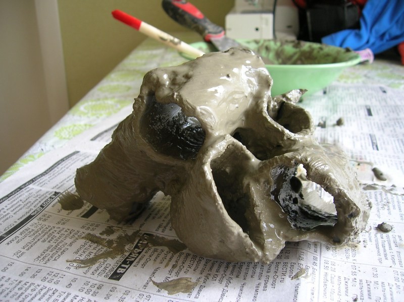 Доделываю дом для цихлид хочется чтобы выглядело как можно более натурально что посоветуете Уважаемые форумчане?Если не красить добавить на время света в аквариуме чтобы обросло зеленью как будет? Лучше или все же красить?По словам Fly идея заслуживат внимания(Спасибо Fly -приятно) поэтому решил на остатках труб показать подробно изготовление подобной декорации. Сначала нарезаем канализационную трубу кусками как рука ляжет(у меня легла вот так куски около8-10 см)  затем начинаем спаивать эти куски простым паяльником  получилось вот так  теперь оплавляем это над огнем  Fly и egor высказали предположение что тонкий слой цемента может отвалиться для предотвращения этого делаем паяльником хаотично отверстия и всякие зазубрины  и обмазываем цементным раствоом в несколько слоев при помощи пальцев и кисточки  Для того чтобы раствор не растрескался при сушки накрываем полученную дкорацию пакетом и переодически спрыскиваем водой.Мое первое произведение сохло три дня и второй день отмокает в воде ничего не отваливается