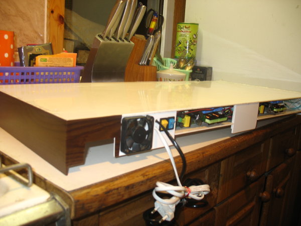 Сзади вмонтирован кулер для вентиляции, запитан от 7-ми вольт, не слышно. В крышку также вмонтирована система донного обогрева аквариума на 50Вт.