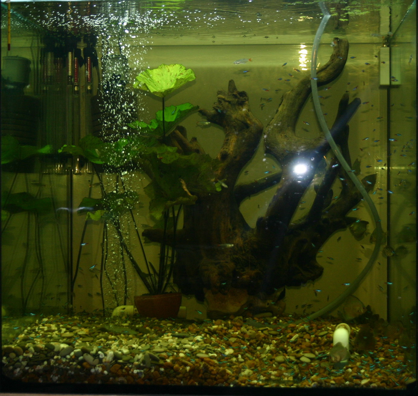 Вчера видел там скалярии с неонами устроили кучу малу
