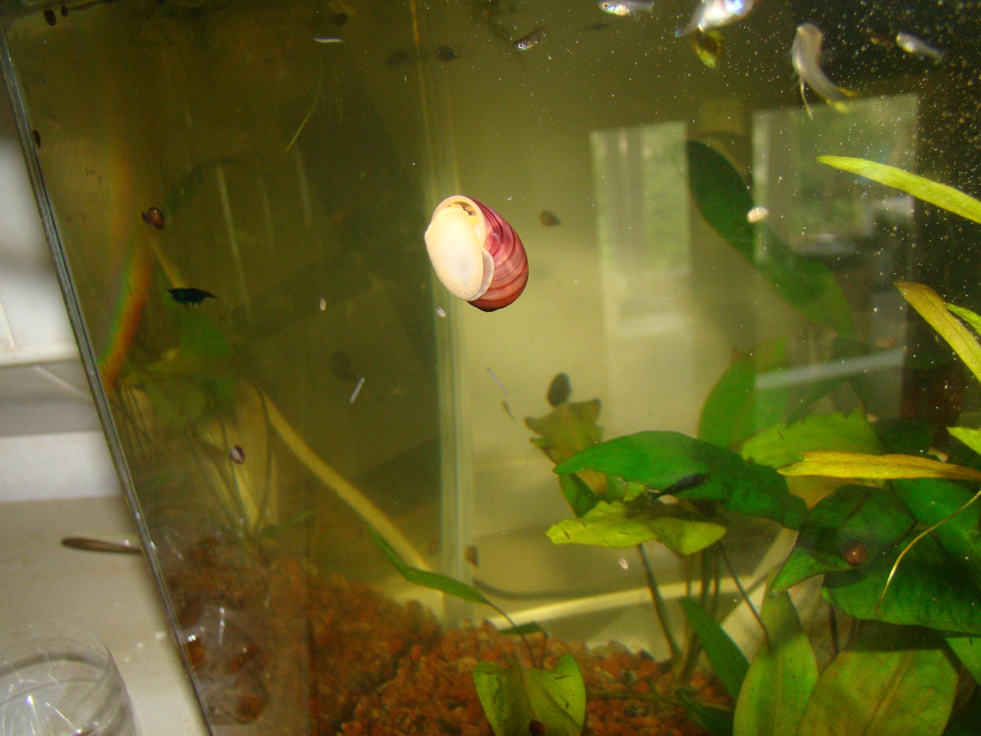 Есть много детей от розовых ампулярий, потомков купленных у Godo http://www.aquaforum.kiev.ua/showthread.php?t=28100, только мне кажется, что дети больше цвета красное дерево, хоть не скрещивались ни с кем т.к. у нас кроме них нет ампулярий, а может просто освещение такое.