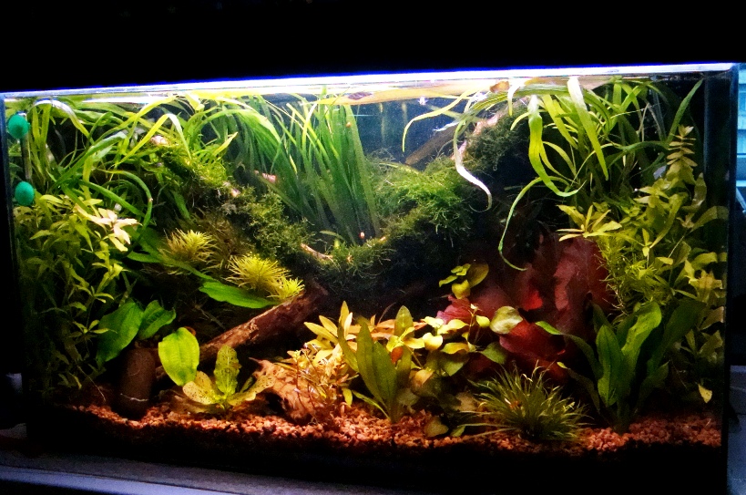 - растения: Валиснерия спиральная, Криптокорины, Папоротник индийский, Папоротник таиландский, Гигрофила иволистая, Бакопа каролинская, Ротала индийская, Эхинодорус, Элодея канадская, Наяс;
