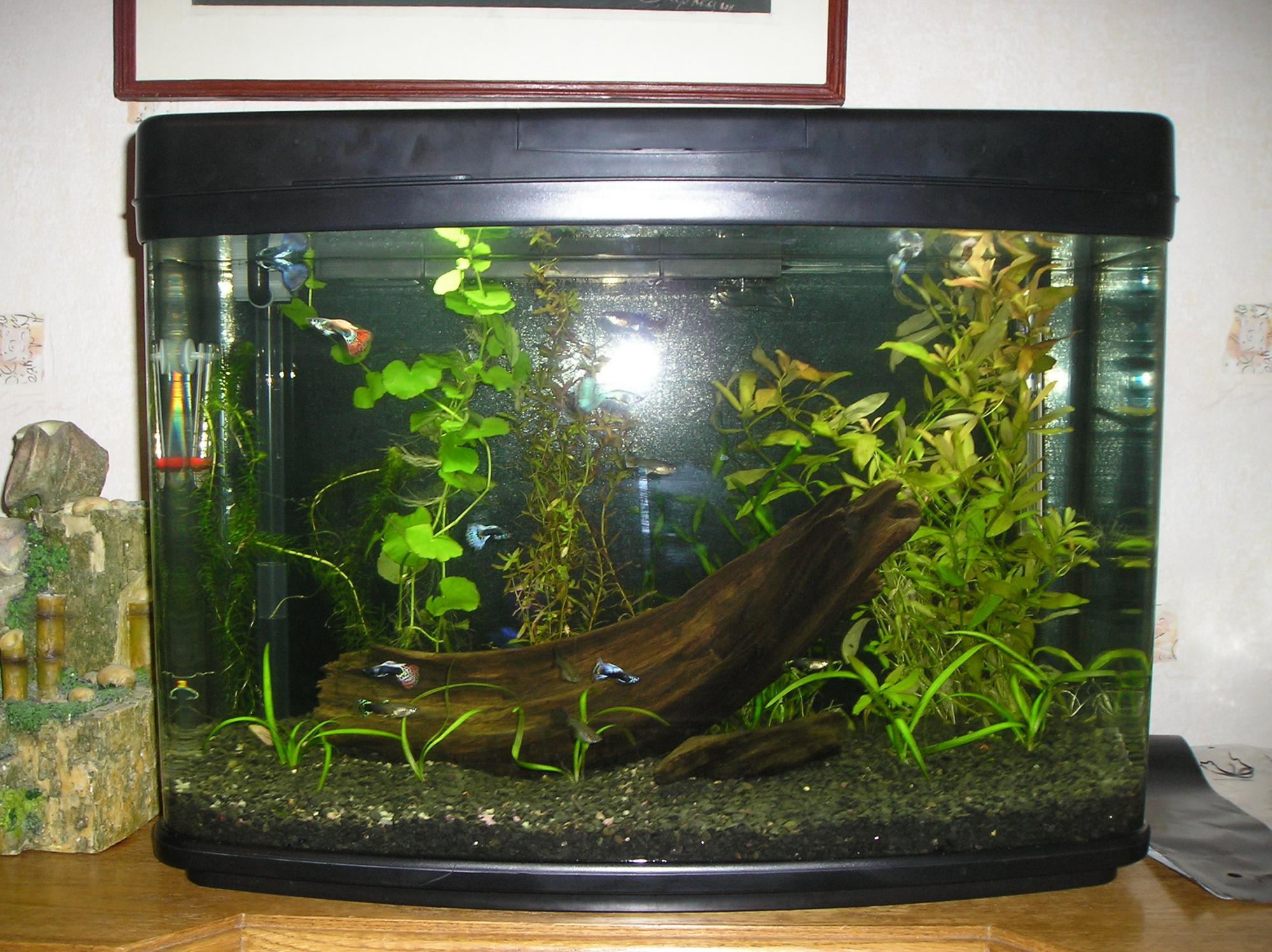 Запущен 2 дня назад, вода как не удивительно быстро стала прозрачной и без всякой химии, из рыб осмелилась запустить на второй день только 13 гуппи, рыбки вполне счастливы, активно начали кушать, мальчики уже пристают к девочкам