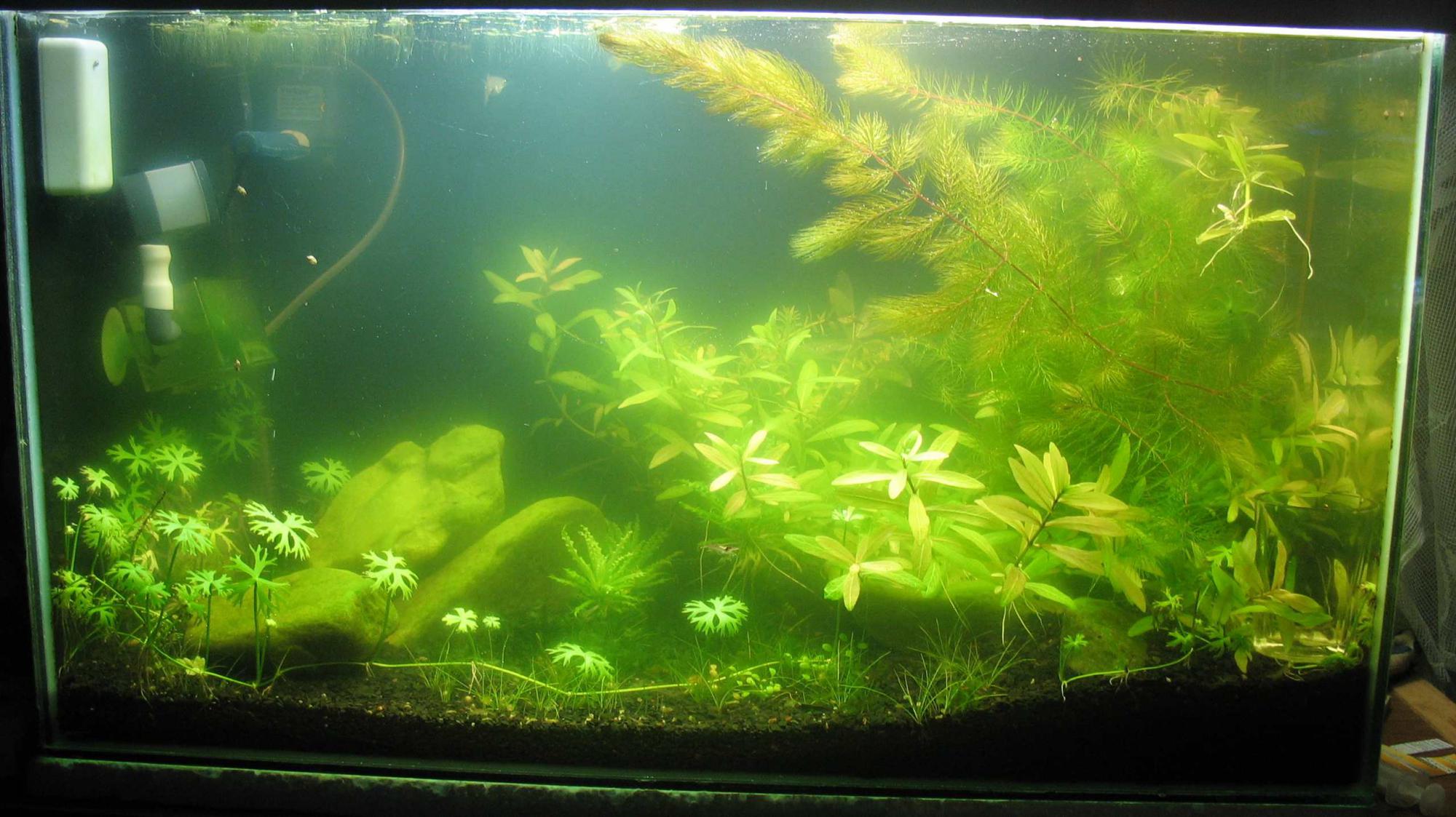 Передісторія: акваріум на м"якій воді, запуск пройшов гладко, але після збільшення світла зацвів. Цвітіння не лікувалось нічим (часті підміни, УФ, сайдекс, затемнення, збільшення біомаси рослин). Будь-який позитивний результат нівелювався за 2-3 дні.