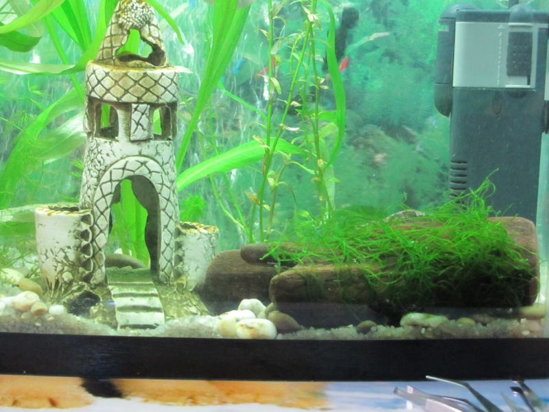 Растения рассадили норм. Но красивее было бы я думаю большой куст посадить за замком. А еще в дальнейшем можно заменить керамический инородный объект (в смысле замок) на мангроваю коряжку. Было бы красиво.