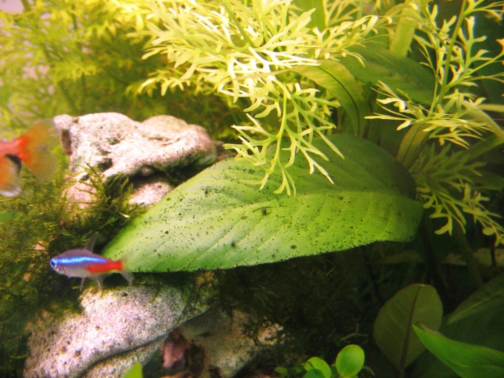 я один анубиас пытаюсь закрыть апонагетоном, а второй папоротником, в аквариуме натянуты леска и сделаны грядки, в которых плавает капуста. Я еще во внутрь куста напихал длиностебельки, жду когда она разрастется. Еще думаю может подкормить анубиас (коренву подкормку дать ему, может он пойдет больше в рост и не будет так обрастать.) а световой день я сегодня уменьшу. И для рыб диета, станет теперь ежедневной процедурой (не голодовка , а диета). Спасибо, за ответы