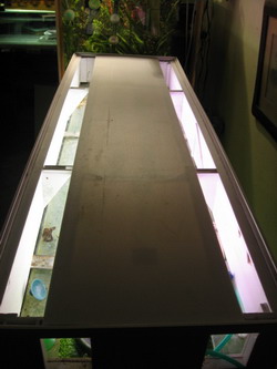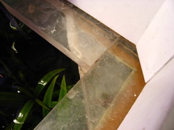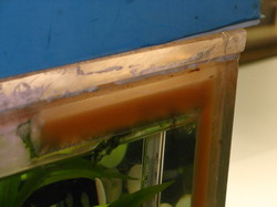 Теперь так - маленькая банка силикатное стекло, ничего особенного. Большая - акриловая. 1600*500*500*10. Куплена как Б/У около 5 лет назад. Была только одна горизонтальная стяжка около 7 см. в диаметре( теперь на ней под МГ кактусы иногда греются) накленная сверху на боковые стенки фото gorizont объяняет это. Маленькие угловые стяжечки - скорее для психического успокоения, вклееные в углы аквариума. Я для страховки "обогнал" периметр стяжками шириной 100 мм и толщиной 10мм. На фото Ugol_2 видно как уголки вклеены, а мои стяжки лежат сверху. Дальний правый угол дна поднят над столом на 4 мм. Дефект склейки (не мой). Посему сбелал из PCV окантовку низа водоема.