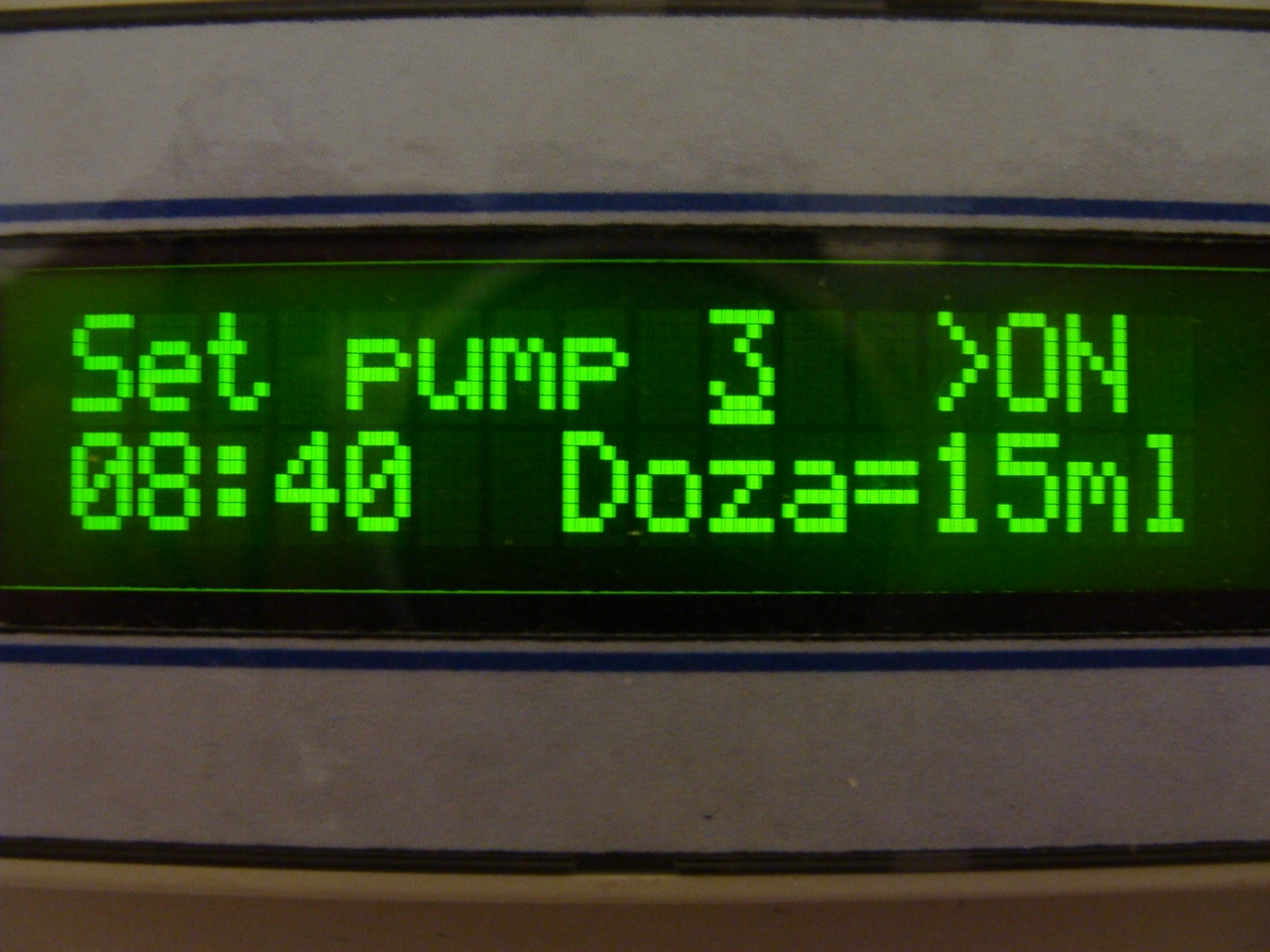 Всё. Дозатор готов к работе. На дисплее отображается текущее время, число и месяц, номер режима и включенные каналы.
