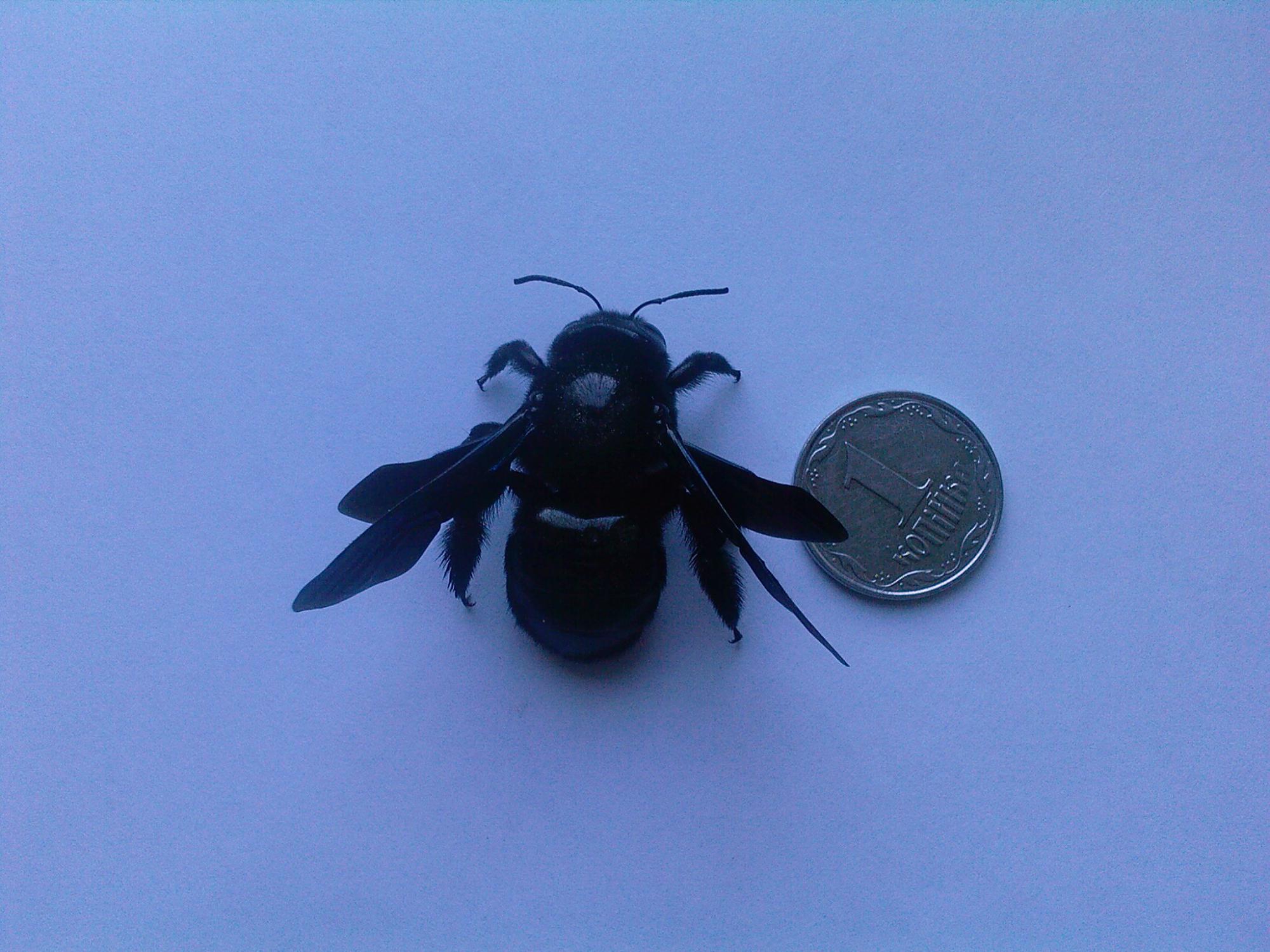 Вчера залетело в окно и погибло. Очень похоже на пчелу, только вот размер и цвет? Фотка пока плохая , телефон, но завтра выложу с фотика.Цвет темносиний , кобальтовый , почти черный.