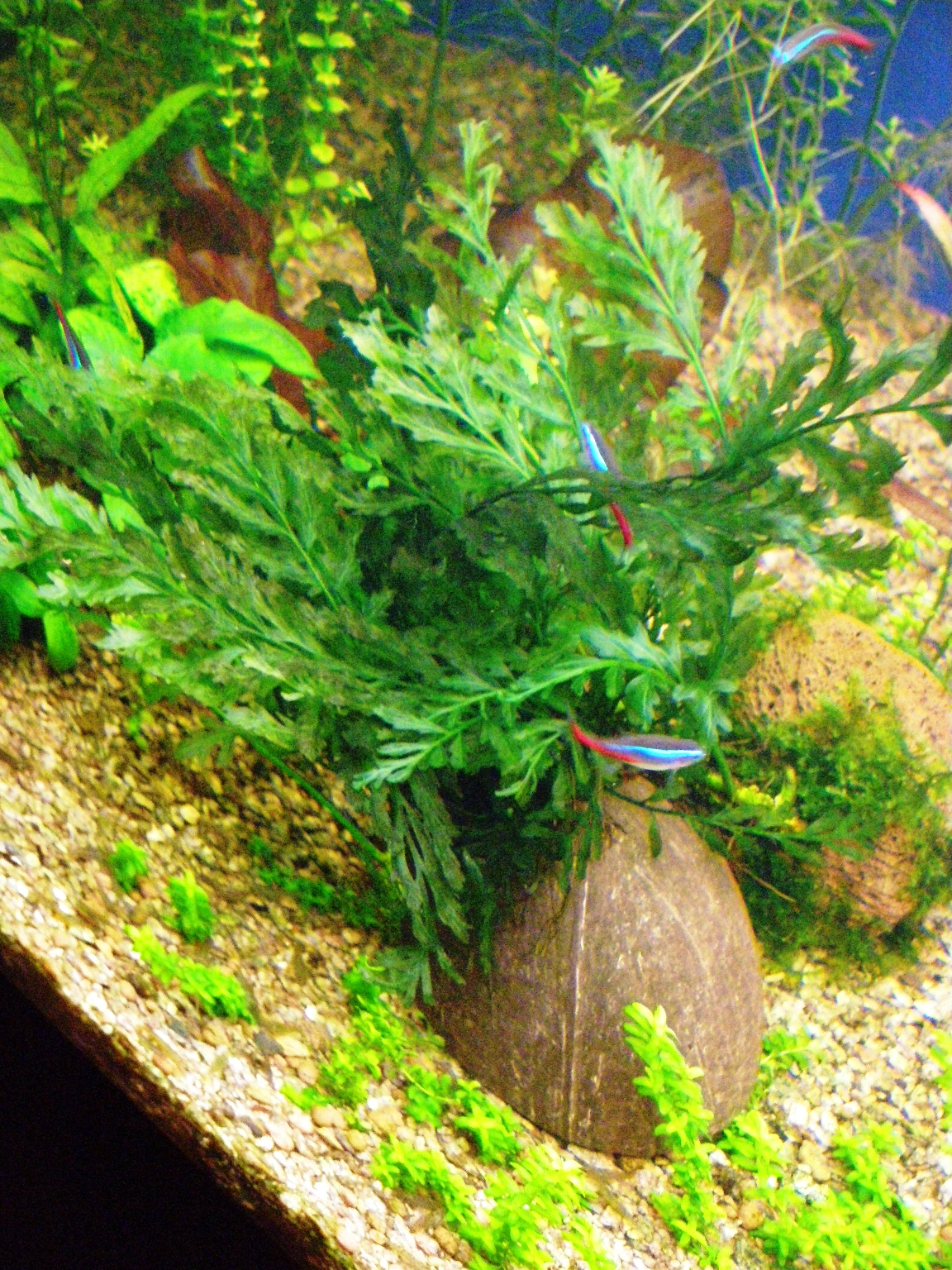 Когда-то в центре Черкасс возле здания госадминистрации была кафешка-столовая. Там стоял аквариум, и я всегда садился возле него и долго рассматривал папоротник, который рос вдоль задней стенки листья - до самого верха. Корневище - мощное, в длину на весь аквариум, а аквариум был не менее 120 см в длину. Как-то остальное смазывалось, не запоминалось. Всегда завидовал тому, кто вырастил такое чудо.