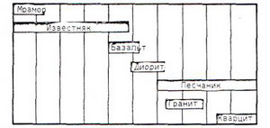 Чем "правее" (кислее) порода, тем меньше содержание мела - тем более она нейтральна. Хотя, по пещанику вопросы есть - возможно, имели ввиду кремень, а не пещаник.