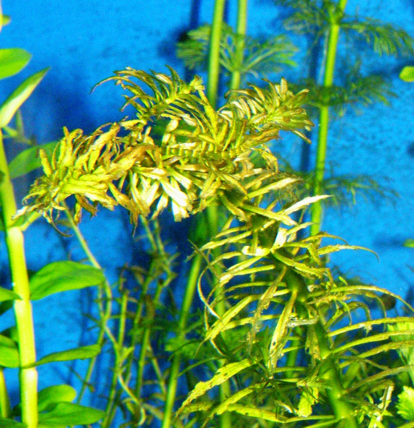 Есть подозрение, что проблемы начались, когда поставил покровные стекла и уменьшил световой день на 1,5часов - боролся с температурой. Вывод сделал по тому, что у гигрофилы иволистной цвет верхних листьев был коричневатый, сейчас - зеленый. Или покровные стекла, или длина светового дня - восстановил, как было до перемен.