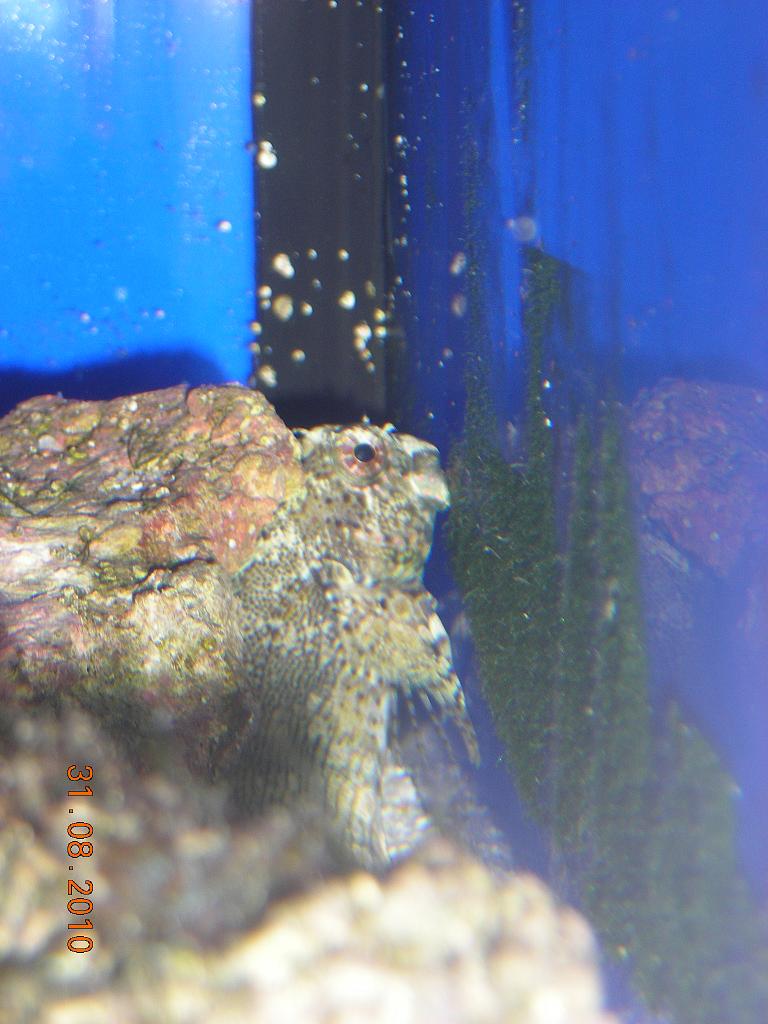 пару дней клоун пытался грысть хелмона, тот ныкался за помпой. сегодня хелмон переехал на новое ПМЖ - в канализацию  . чуть почернел и валялся возле логова офиуры - все пишут что те жрут все, но у меня какая-то ленивая, даже не приступила к трапезе  , хотя может просто недавно здох, но спина успела почернеть.