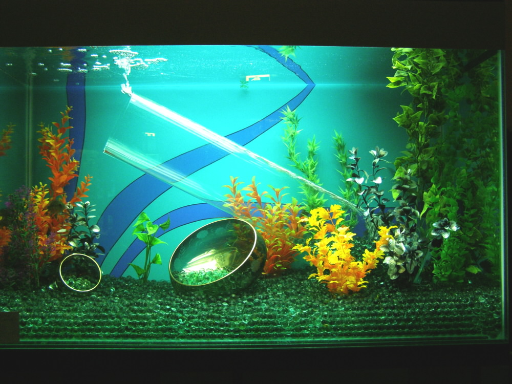 Еще запомнился "техногрессивный" аквариум с большой прозрачной трубой, на любителя конечно