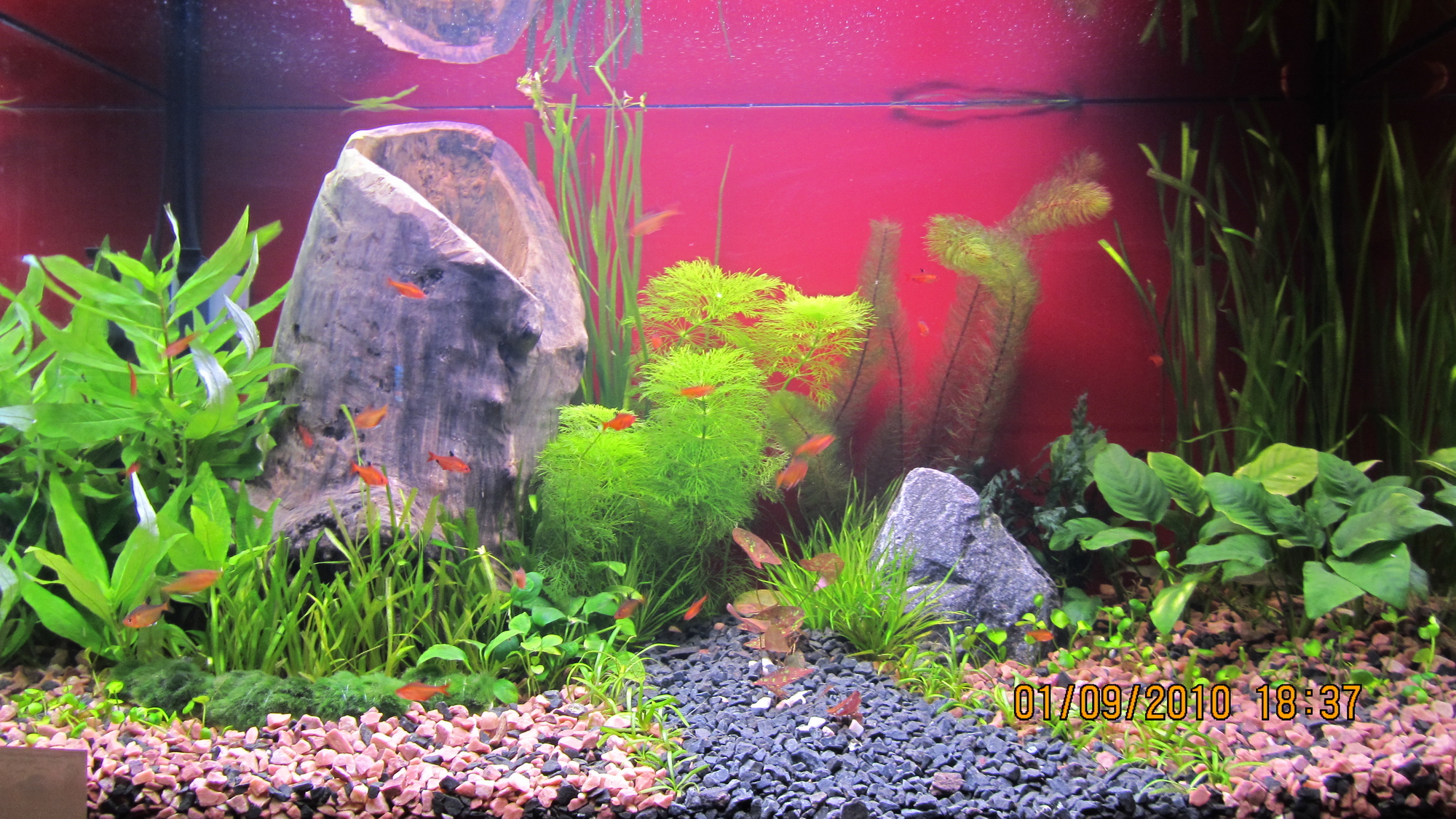 Наверно красный фон!Я себе тоже такой хочу нацепить в банку 240 литров!