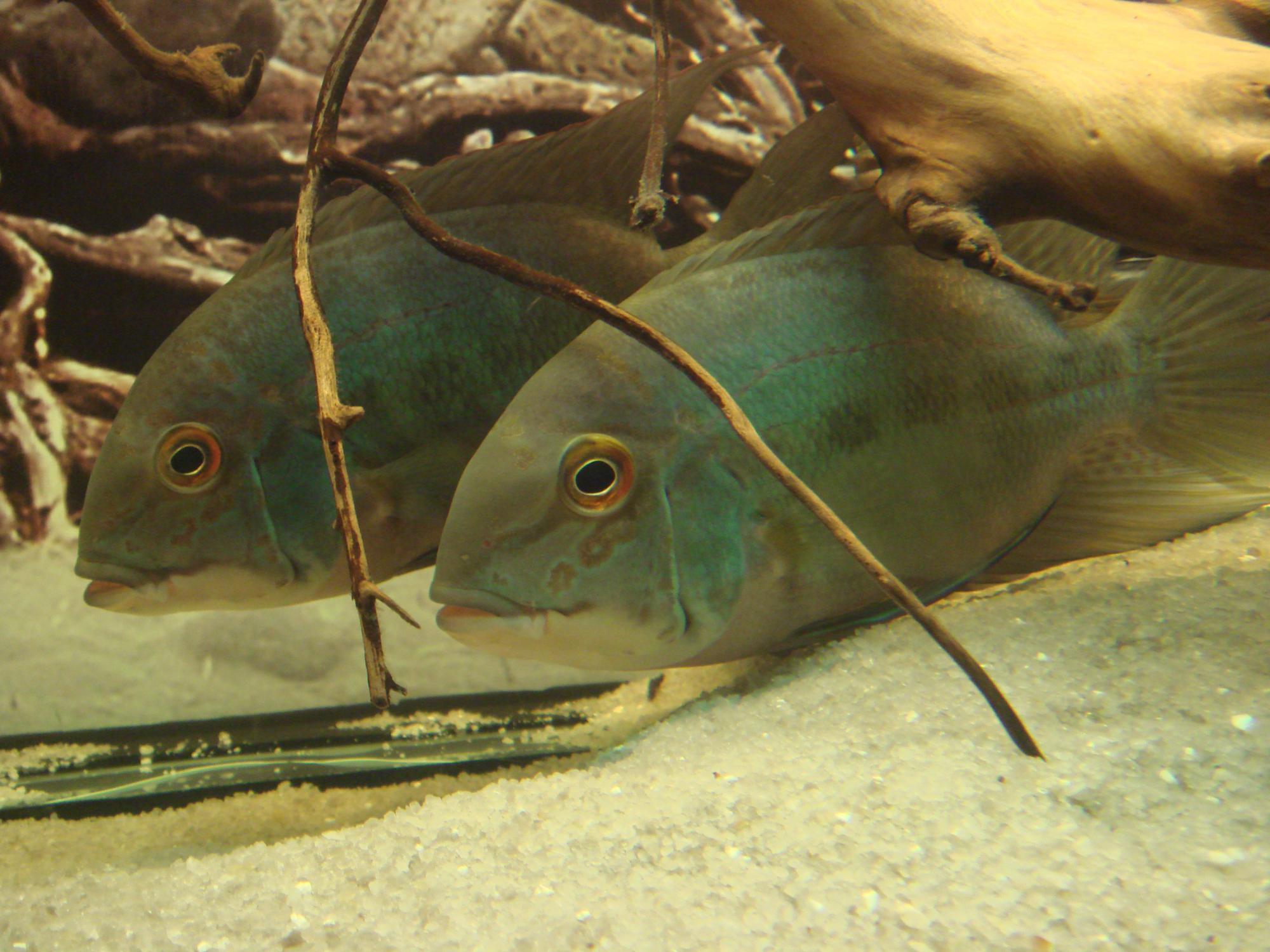 Мне попадались Hoplarchus psittacus только с Геккелевыми дискусами на Риу Негру, Урубу и Ньямунде, а также с голубыми дискусами на Тромбетасе.