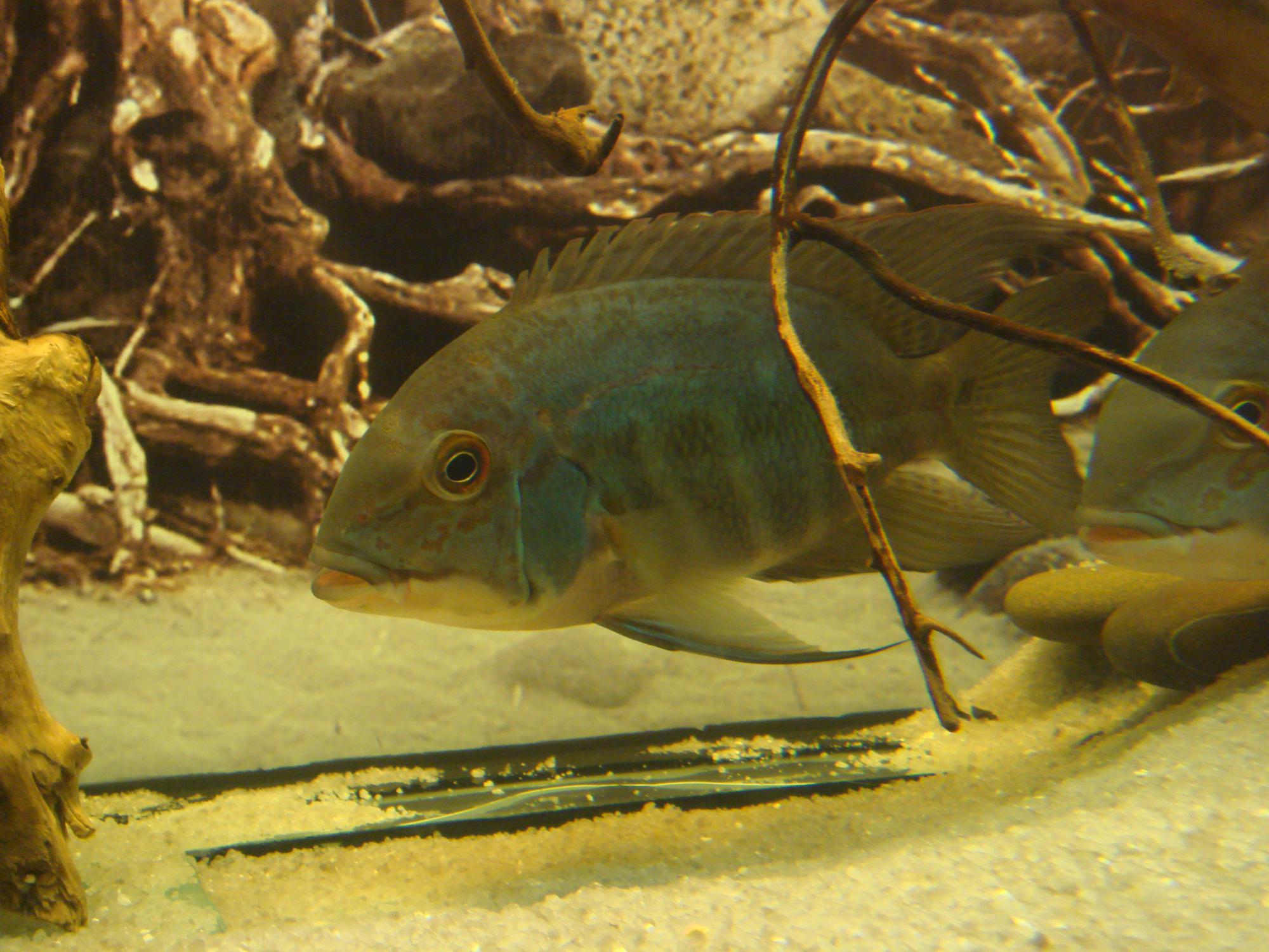 Ещё несколько снимков похуже. На втором виден экземпляр поменьше (~17см), но его не обижают! Хотя его в общий аквас я подсадил гораздо позже - гонений не было! Вообще книга пишет, что у пситакусов сильная внутривидовая агрессия. Могу сказать, это справедливо лишь поначалу - пока не устаканятся отношения. А вообще поведение больше схоже на цихлозом, нежели на собратьев с амазонки.