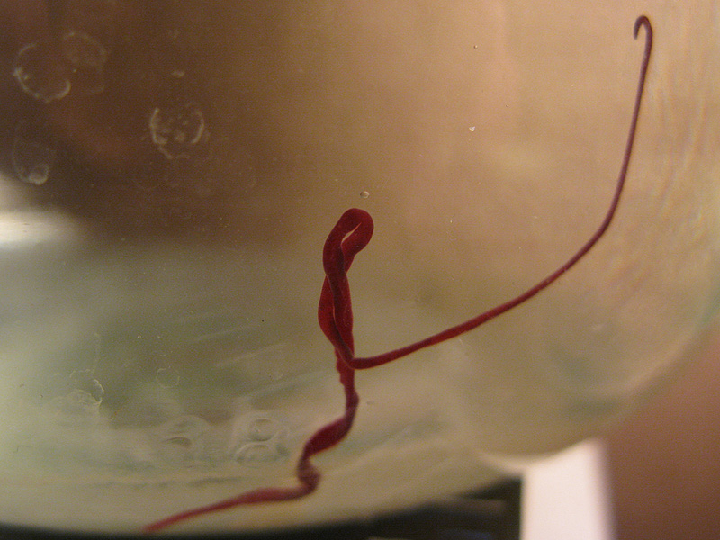 Какое-то интересное создание было обнаружено в корнях анубиаса. Довольно длинное - около 10 см. Пиявка, червь? Но цвет красивый