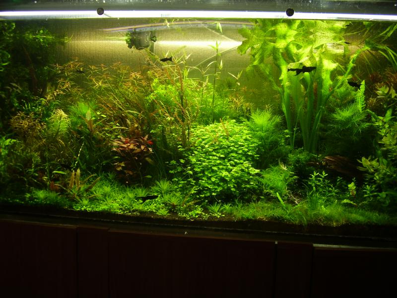 аква 110л.свет-экономки 6шт по 18 вт,6400к.СО2 подается через прутик рябины.