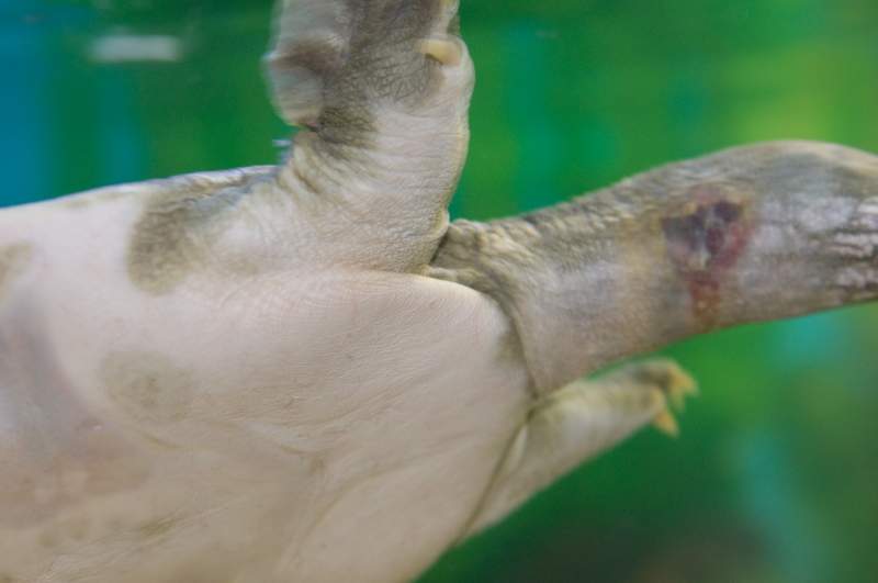 Добрый день. Не могу понять- это линька у черепахи (на первых четырех фото), или это все же какая-то болезнь. И также отдельным моментом: прошу совета, что делать с ранкой на шее (последние три фото). Ранка появилась, когда черепаха неудачно засунула голову под декорацию и пораниалась. Декорация нафиг была выкинута, но ранка все же осталась. Начала вроде затягиваться, но с правой стороны она постоянно ранится, непонятно почему, и ранка не затягивается. Вчера заметил, что черепаха, когда затягивает голову в панцирь, нижней челюстью цепляется за эту ранку. Возможно из-за этого ранка и не затягивается. Что делать???!!! Аквариум 240л, залит до 200л. Есть остров, лампа для прогрева над островом, лампа РептиГло 5,0, грунт крупная галька, фильтр 1000л.