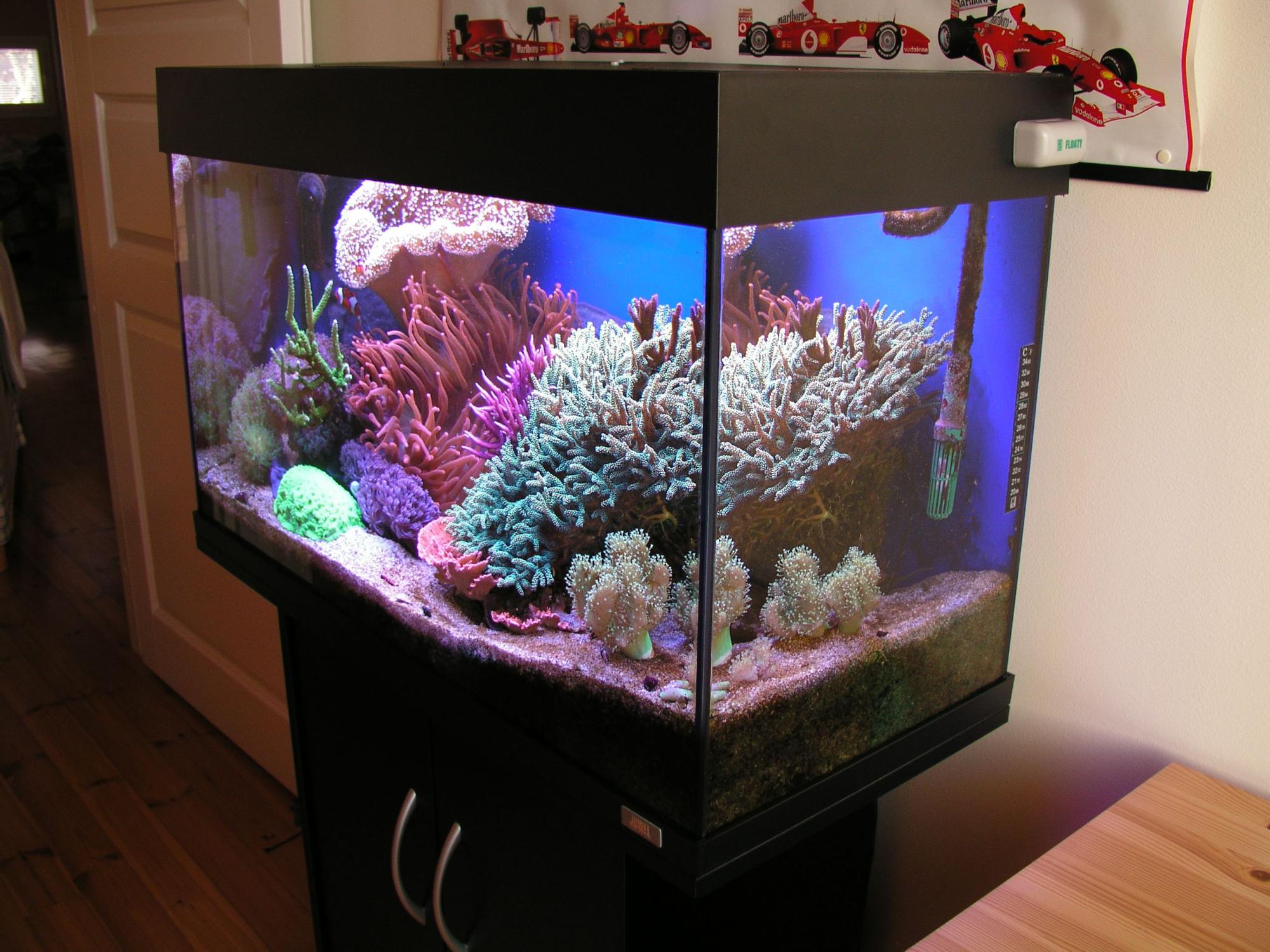 Не хочу, чтобы меня приняли за ярого защитника внешников в морском аквариуме, но всё же... Вот "банка" (терпеть не могу этого слова!), прожившая 3 с половиной года только на внешнике Eheim 2026.
