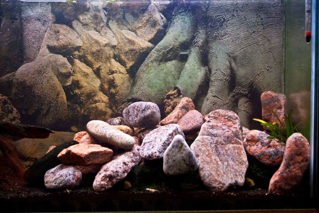Как по мне коряга там была на своем месте,камней немного убрать,грунт посветлей.А свет всегда великая сила,во первых Малики лучше смотрятся,во вторых аквас(особенно камни) не будут со временем заростать бурыми водорослями.А вообще молодец,а переделовать будешь еще много много раз.