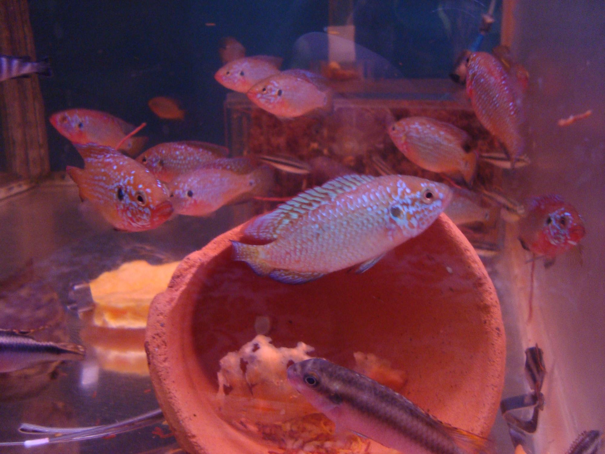 там такие родительские баталии что куда там братса))) уже сами плавают но ещё неотходя далеко от родителей))) в аквариуме всех построили все кто где только покушать быстро их выпускают)))