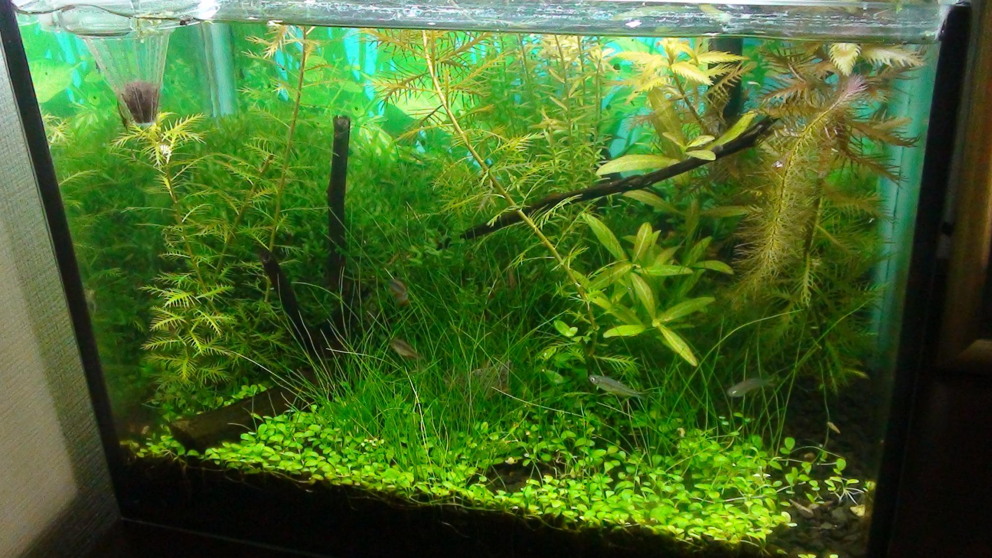 У меня такая дилема: подарили маленький аквариум -15 л, вот думаю, аэрация в нем будет сметать всю растительность и грунт , следовательно буду запускать без аэрации. Тогда и количество потенциальных жильцов уменьшится... Подскажите пожалуйста, какие рыбки приживутся? Я думаю о парочке сомиков и гуппи... или , второй вариант - 6 неонов и пара сомиков. Петушка , моллинезий, меченосцев не хочу. Еще нравятся анциструсы... Опять же, донным рыбам нужны коряги и растения... А в таком аквариуме особо не разгуляешься. Какие растения посоветуете? И еще... накрывать его чем? А то всю пыль соберет...)