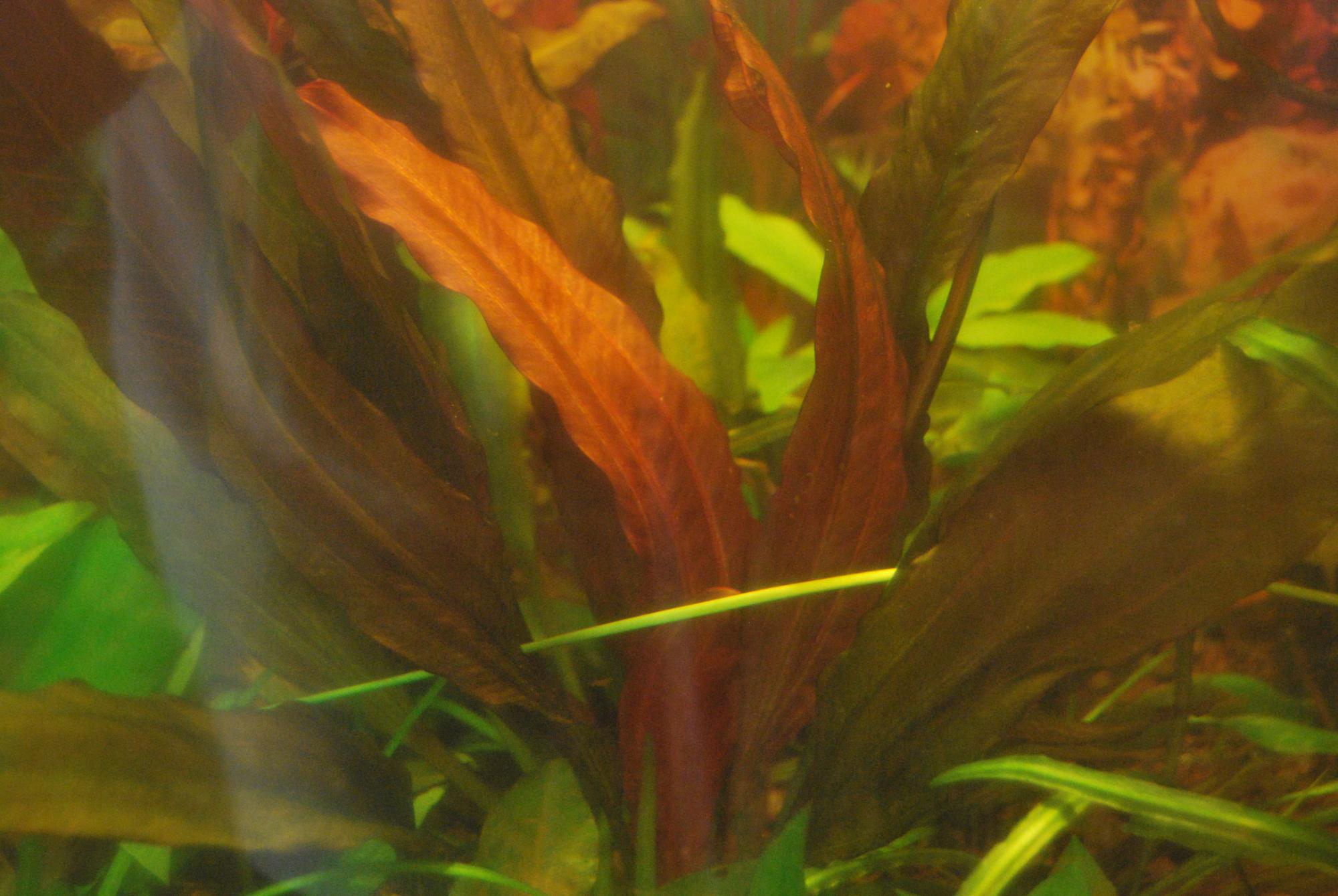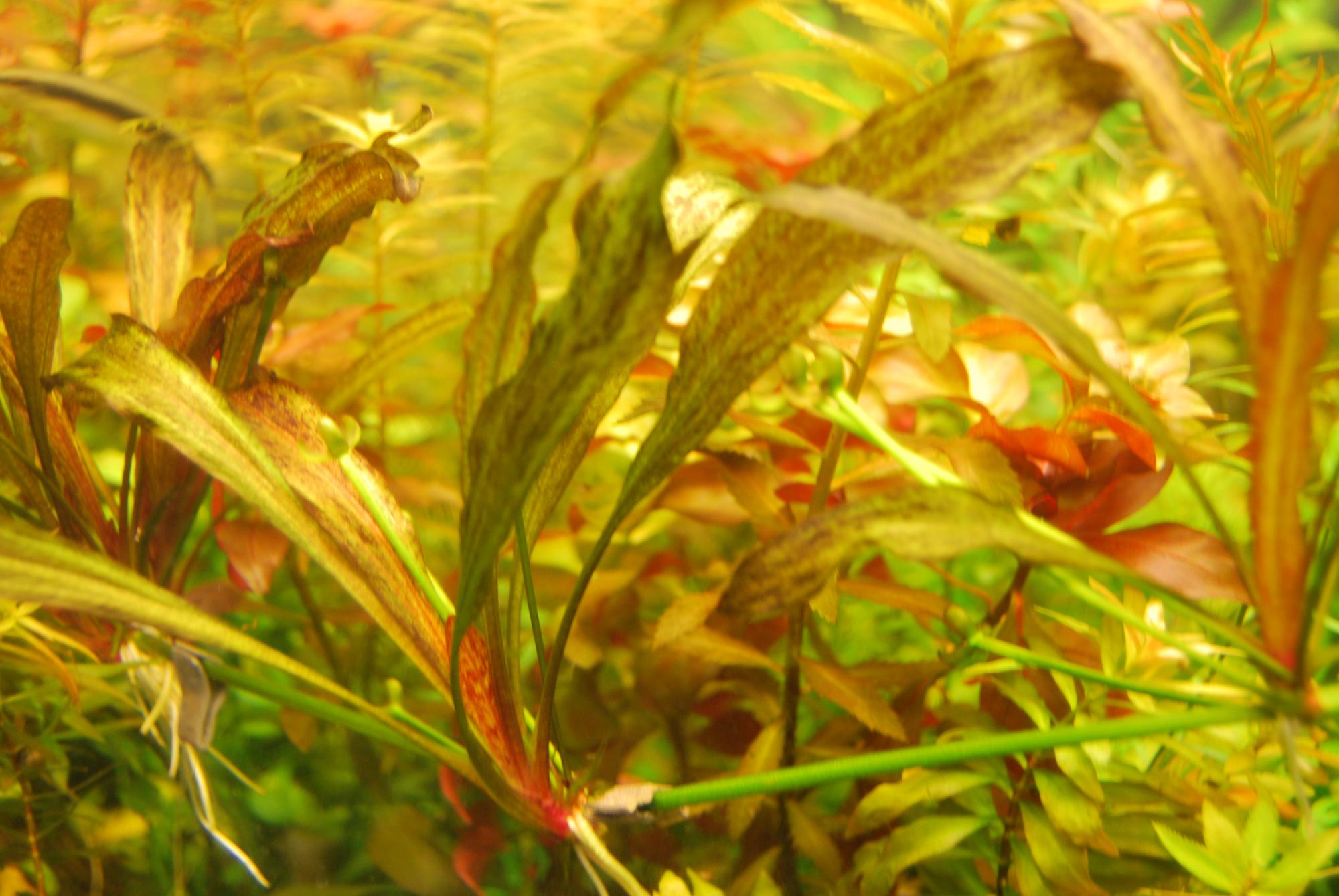 Я еще не встречал Эхинодоруса, который бы держал все листья даже при самом оптимальном спектре красного цвета. Все они по достижении зрелого возраста становятся менее окрашенными особенно старые листья, в то же время молодые листья у многих из них различной интенсивности красные и в благоприятной обстановке таких листьев подростков бывает 5-6. Но все они прекрасны своей оригинальностью , не смотря на то , что это гибриды.