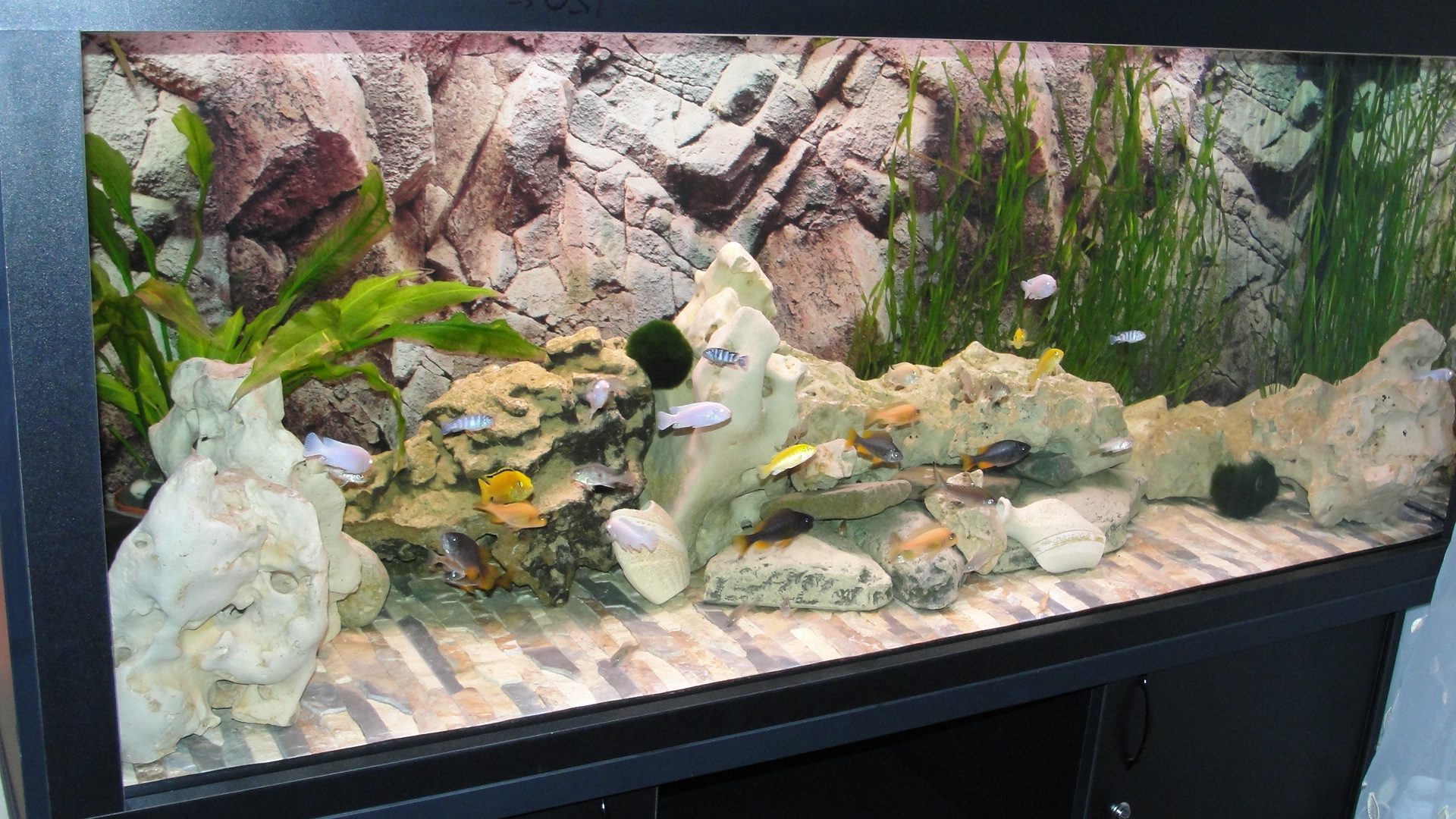 Затем долго ходил в магазинах вокруг 1,5 м го 450л. И так прикидывал и эдак, дороговато выходит с учетом недетских наценок наших зоо магазинов. Решил все сделать по своему. Заказал банку, поклеил вместо грунта на силикон водостойкую плитку для облицовки фасадов (ну не хочу я больше с грунтом заморачиваться !?). Закупил каменьев. Фильтр внешний флювал 304 и внутренний не помню какого китайского завода на под самую большую мочалку. По жителям малави и амер: (пишу на скорую руку поэтому не латинскими) - Катанги-6, снежные принцы-6, дельфины-5, красный дракон-3, елоу-4, акулий бала-2, демасоны-3, геофагус кр гол-4, королева ньяса-5, птеригоплихт-1, гелинохериус-2. Крышку с тумбой делал сам, ну не сам но по своему проекту, светильники покупал киевские с плафонами 120см, лампы осрам флора и сдуру купил филипс аква (не юзаю света от осрама оказалось достаточно).