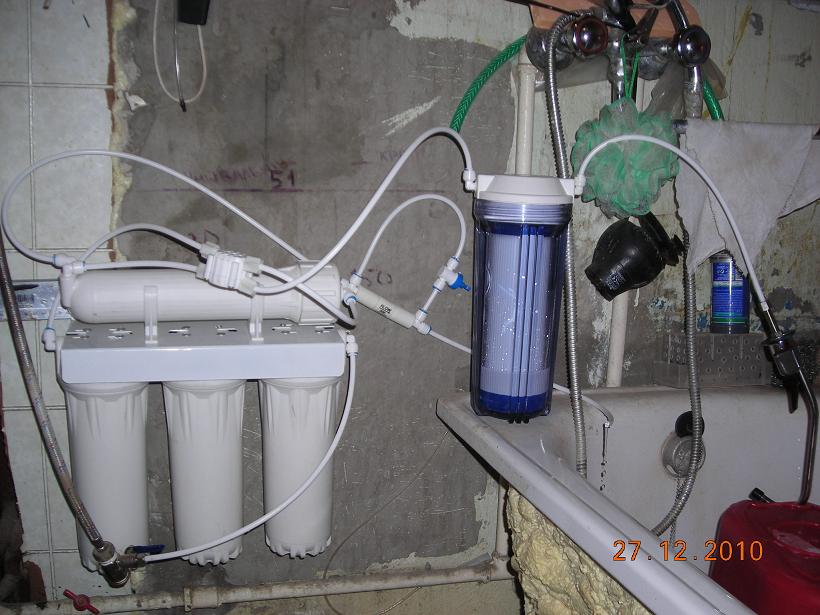 Колбу купить надо для 10" картриджа. Не ВВ (Big Blue). Желательно с разьемами 1/4 JG. (это как в осмосе -тогда тупо врезать в выходную трубку из мембраны.)