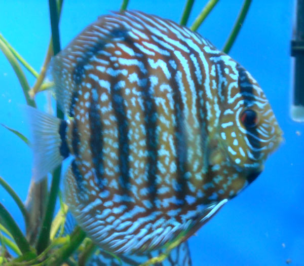 Стрессовые полосы у дискуса как прибитые. Но при этом дискус иногда чернеет и синие полоски становятся очень яркими (аж сияют, очень даже красиво выглядит).
