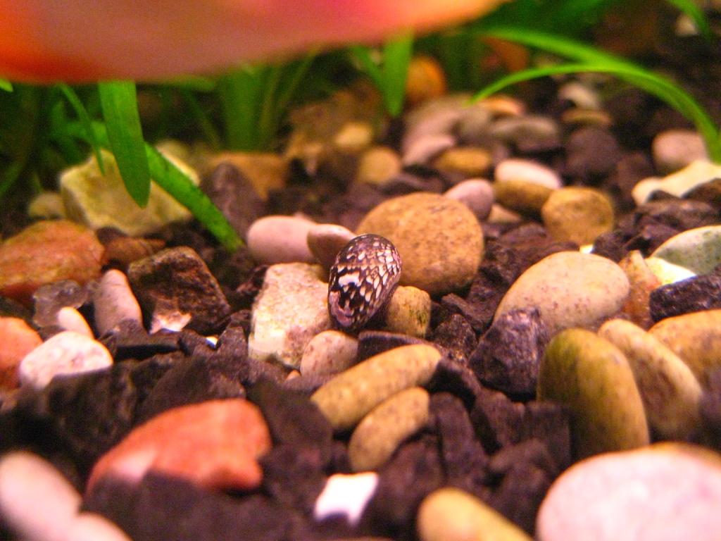 купил я значит сегодня пяток хеленок, прихожу домой, выпускаю их... наблюдаю... и что я вижу... на стекле аквариума ползает маленький теодоксус, сфотографировать сложно оказалось, фокус на стекло не срабатывает! потом смотрю на раковине катушки ещё один сидит! сфоткал в макрорежиме... если первый абсолютно ещё прозрачный, то второй уже имеет явный окрас теодоксуса!