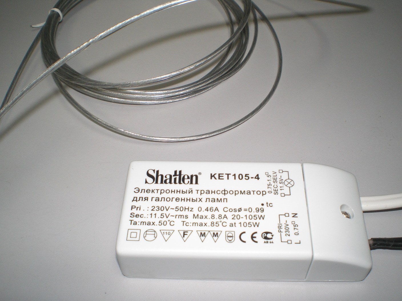 Подключаем к трансформатору, тестируем. На воздухе шнур греется не сильно, менее 40 град. Поместил в ведро с водой, проверяю температуру воды, проводов и электронного трансформатора. 6 часов работы - все в норме, вода потихоньку себе греется, подводящий провод холодный, транс чуть теплый. В ближайшие дни буду ставить в аквариум.