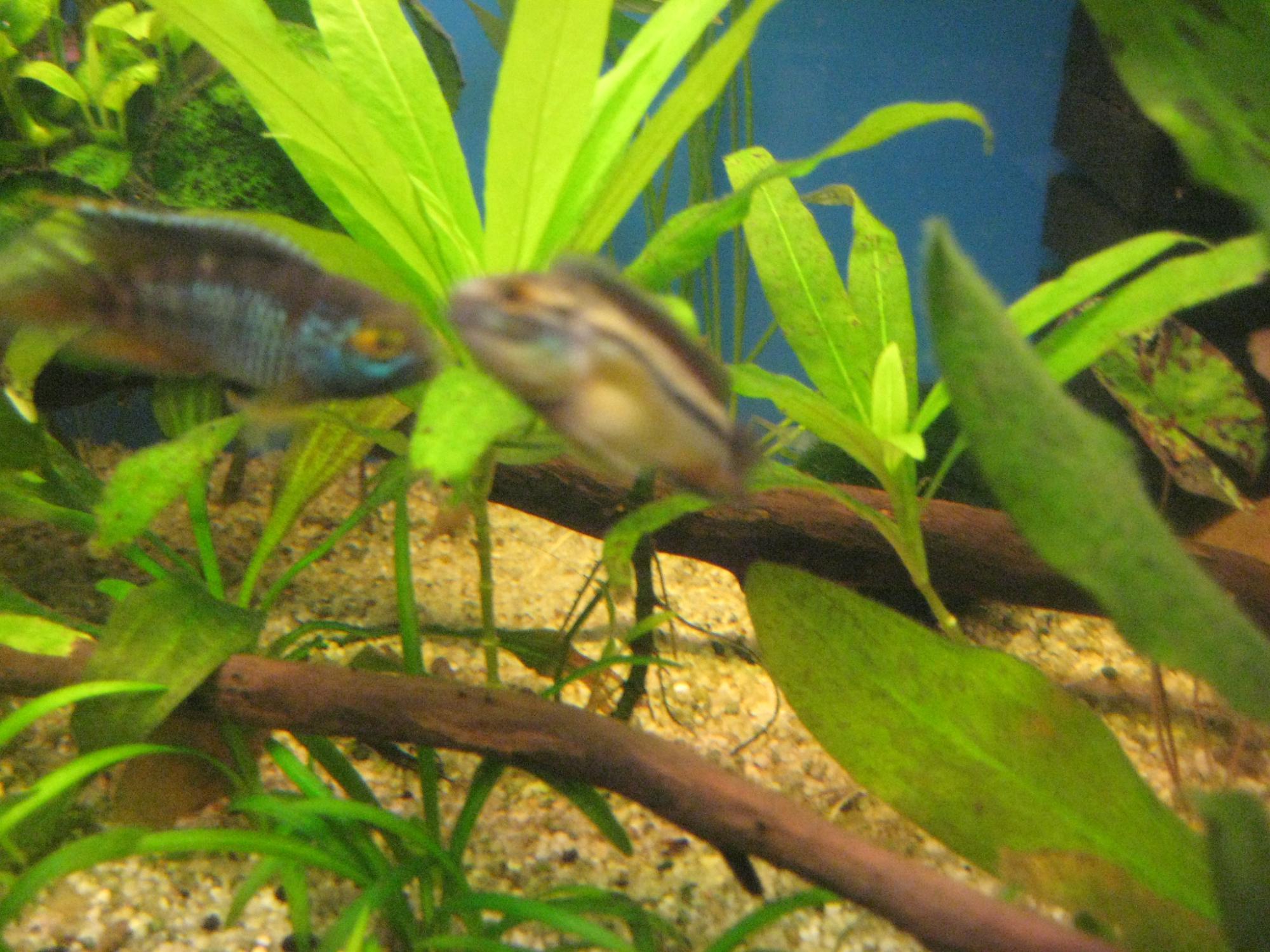 Хорошие новости,малек от первой самки начал самостоятельную жизнь.Плавает по всей банке,кормится совместно с взрослыми особями.Наверное на выходные пересажу в выросной.