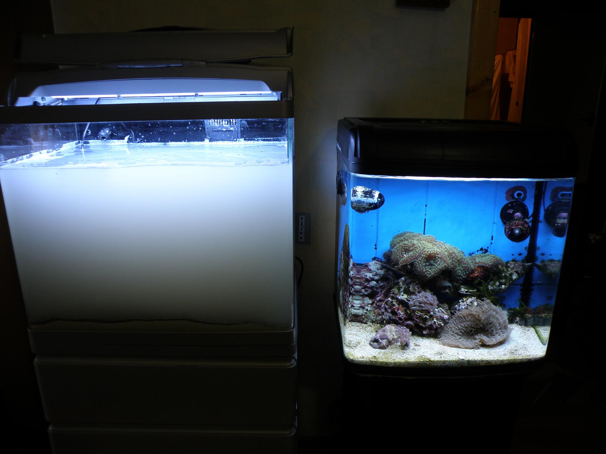 Аквас купил с немного переделаним светом: там стоят 2 по 24в на 15000к, одна 10000 24в, и актинник на 24в. Все лампи Аква Медик