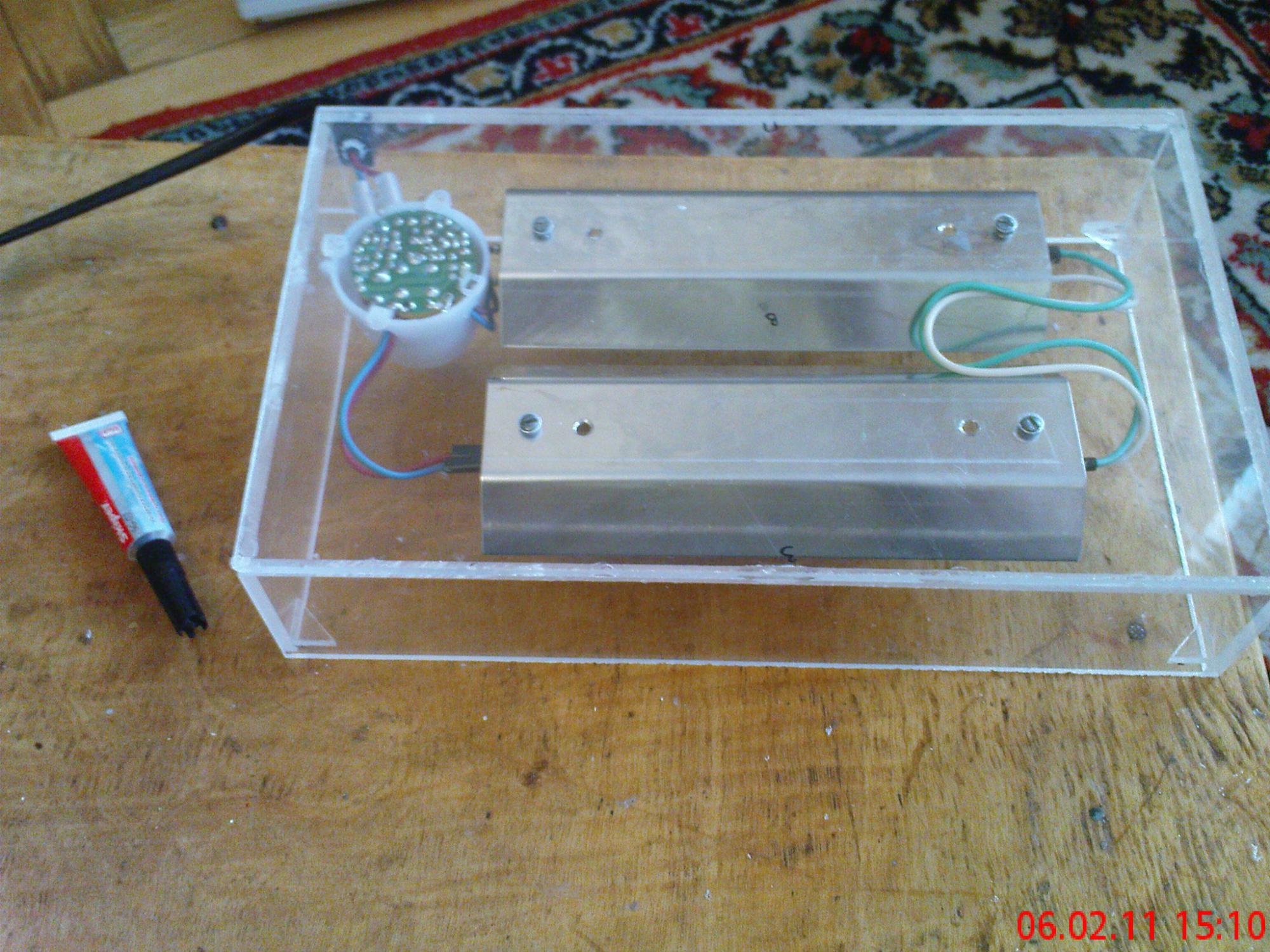 Я когда клеил сделал зазор между колпачком и поверхностью подложил кусочки пластика. А вообще спасибо за совет завтра насверлю дырочек. На следующих выходных доберусь до радио базара там куплю маленькие кулера и будет вентилирен!!!! Тогда уж и влага и перегрев будет не страшен.