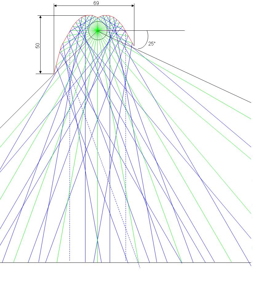 Если все правильно делается и учитываются углы гиба, то рассеивание отражателя идет правильной площадью, если они не соответствуют углам отражения то здесь сразу теряется доля эффективного отражения.