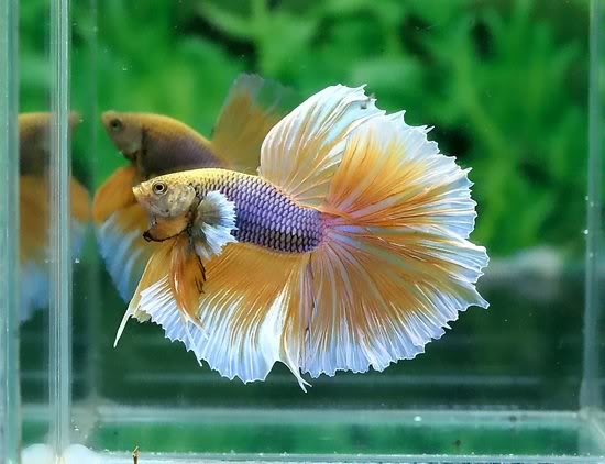Ну вот такие фото получились, качество не очень. Кстати у петьки хвостовой плавник как бы из двух состоит, то есть это похоже на Double Tail Betta. Главное, чтобы прижился и был здоровенький. На иноземных сайтах пишут, что самку нужно попроще.
