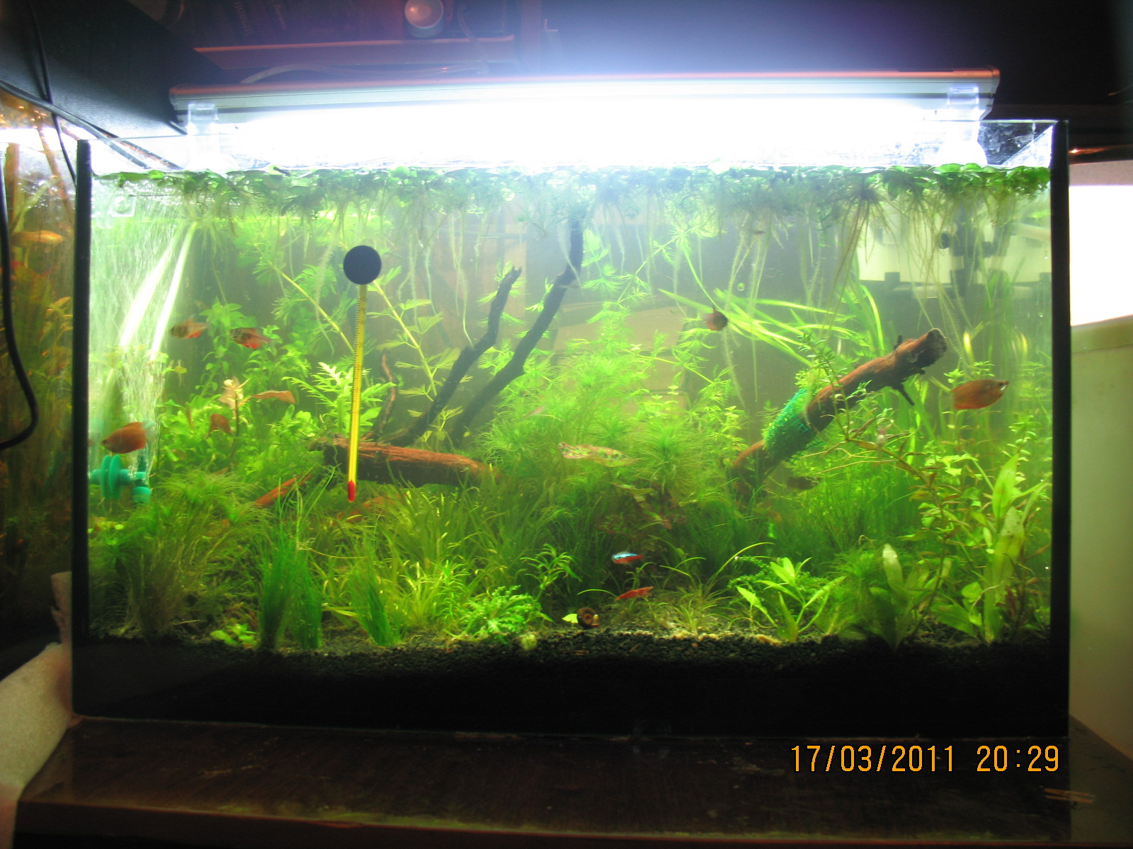 lorana, а ты боялась все нормально. Только я градусник сантиметров на 10 вправо сместил-бы, что-бы четко по центру аквариума стоял