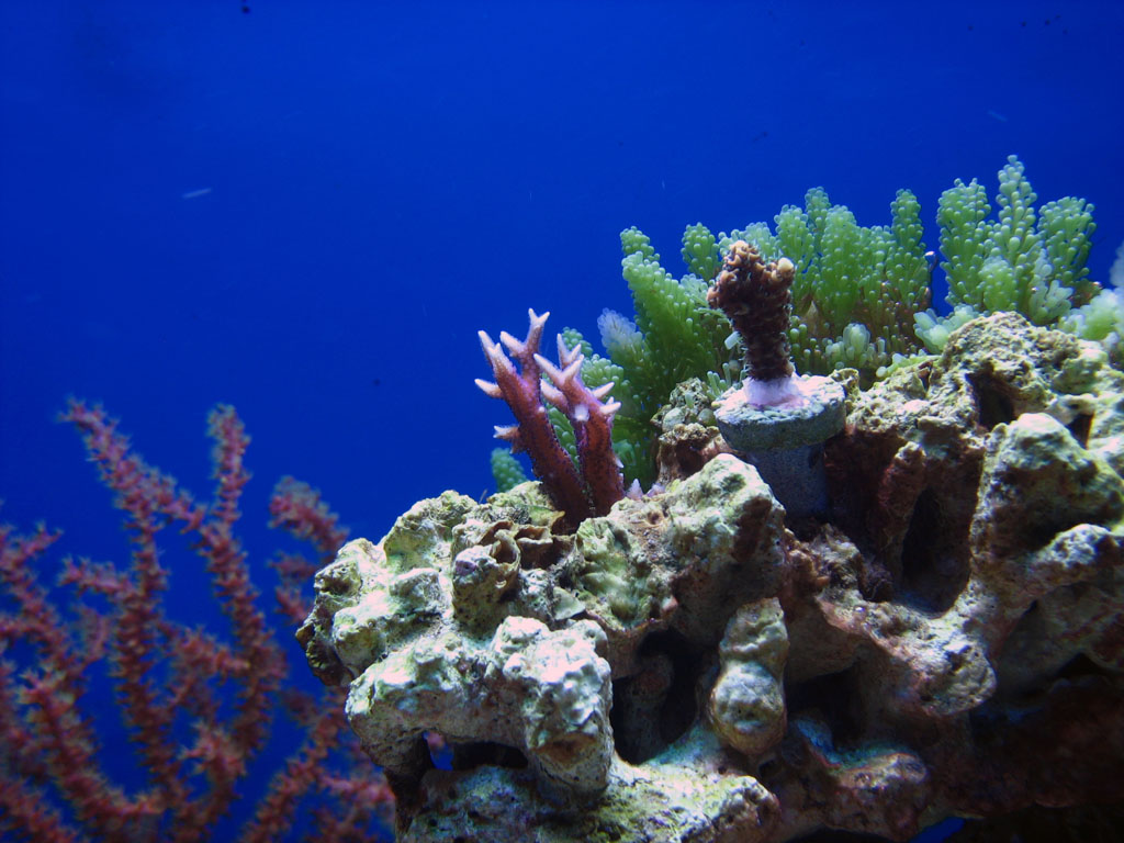 Недавно были приобретены новые жильцы: Dendrophyllia, Catalaphyllia, Euphyllia, Gorgonia, Plerogyra, Parazoanthus, Studeriotes и еще очень веселый и полезный зверь - Labroides dimidiatus. Все они живы, отлично кушают и выглядят здоровыми!