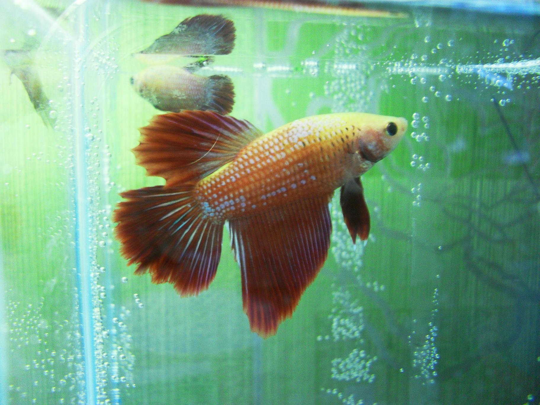 Plakat, или Plakad – это наиболее близкая к диким особям форма хвоста, встречается достаточно часто и выделяется на фоне других своим размером. Очень часто неопытные заводчики петушков ошибочно принимают самцов плакатов за самок и становятся свидетелями боёв двух самок за территорию). Как же всё же отличить самцов плакатов от самок? Для этого стоит уделить больше внимания на брюшной плавник у самцов он более удлинен по сравнению с брюшным плавником самки, более округлый хвостовой плавник и острый анальный плавник . Термин Plakat часто сокращенно обозначают "ПК". В настоящее время известно три подкатегории связанные с этим хвостом: