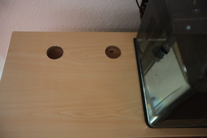 итак шаг 1. заказал алмазное сверло. на работе сделал 2 отверстия в дне аквариума, чтобы вода могла стекать к соседям  и покрасил заднюю стенку черным лаком.