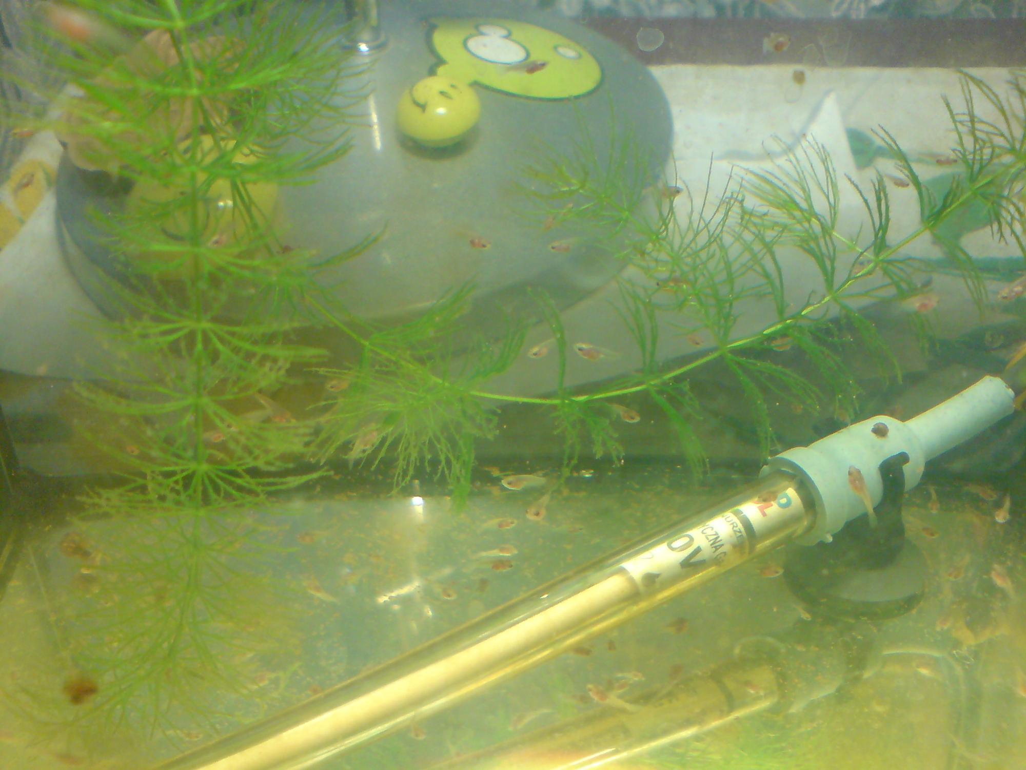 а теперь самое страшное, не ругайте сильно. артемию я даю следующим образом: пробовала по технологии, в тряпочку и промыть. почти все осталось на тряпочке, я делаю по другому, буре стаканчик, набираю половину воды и половину воды с артемией, то есть соленой. и вливаю в нерестовик. как видите последствий нету, хотя может из-за этого мои медленней растут.