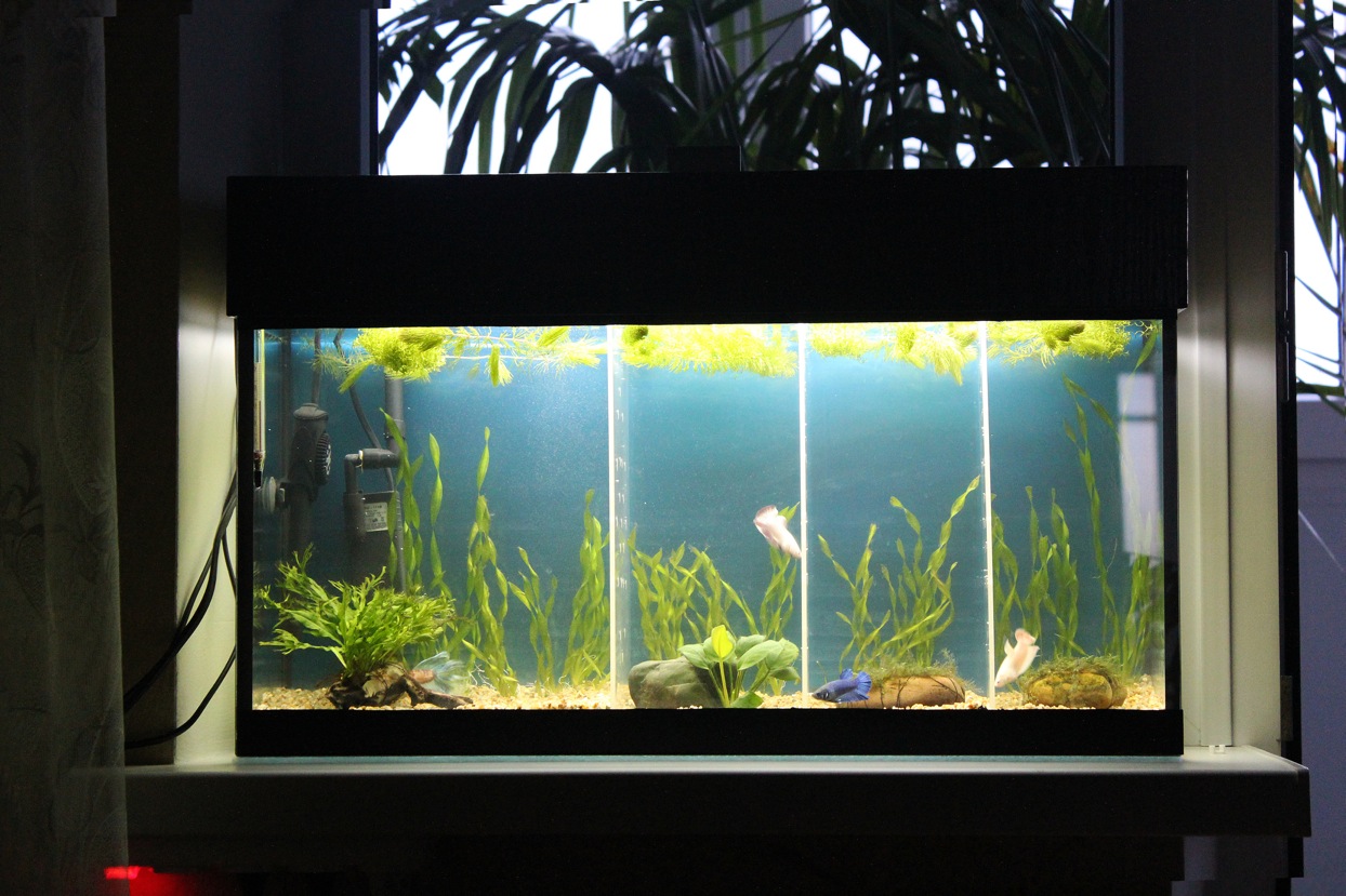 Размер аквы: ширина 200 мм, высота 300 мм, длина 600 мм, между перегородками 120 мм, одну слева пока не ставил.