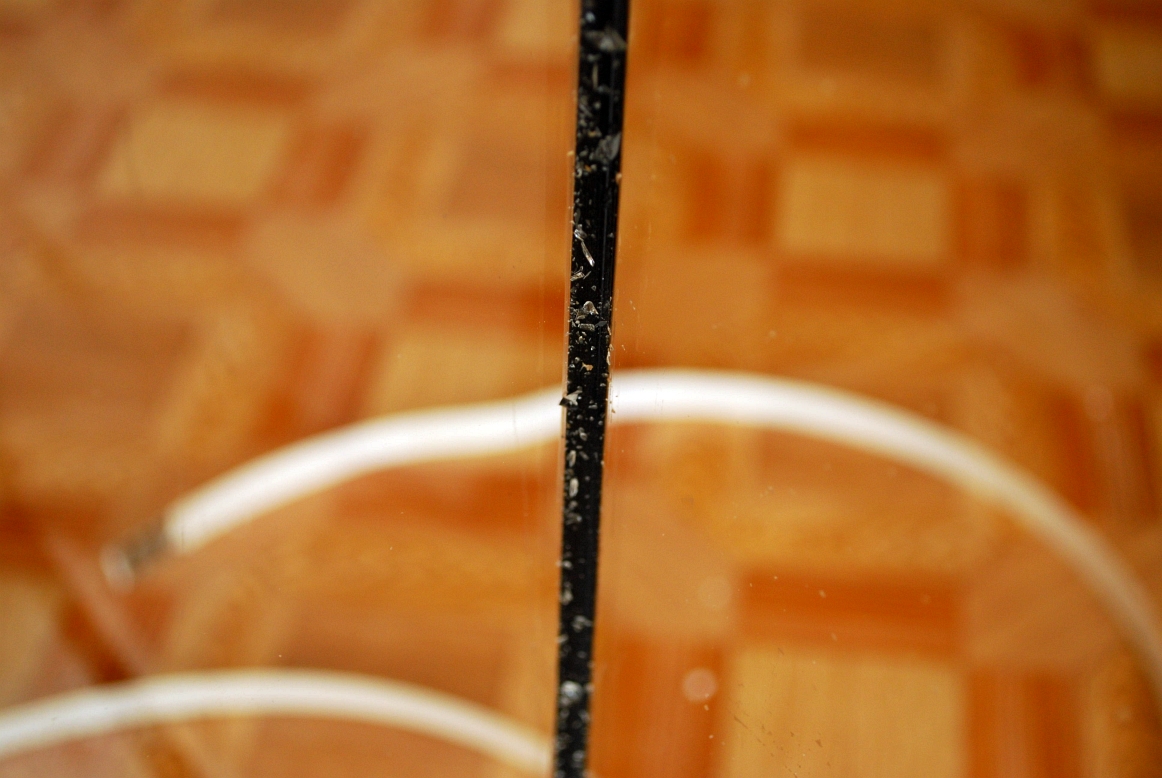 Что характерно - последние фото - это фото швов с противоположной стороны аквариума (от битой стороны до них - 80 см). Так эти швы густо покрыты мелкой стекольной крошкой, что говорит о том, что аквариум, скорее всего разбили на этапе погрузки в Харькове, а мельчайшая стекольная крошка разлетелась по всему аквариуму в процессе следования, когда сквозняки гуляли внутри аквариума.