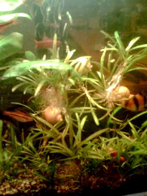 Вчера, пришедши на работу, не узнал банку, как будто экскаватором рыли. Грунт сгребен горами, растючка плавает, весь ил со дна кружит по банке... Платидор горяет на бешенной скорости, играет ампуляриями в футбол, подрывает оставшуюся траву... Короче 1917 год, Зимний дворец...